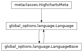 Languageobject is a global setting in Highcharts and it cannot be set on each chart initialization. Instead, it has to be set using (in JavaScript)Highcharts.setOptions(...)before any chart is initialized.Class Inheritance